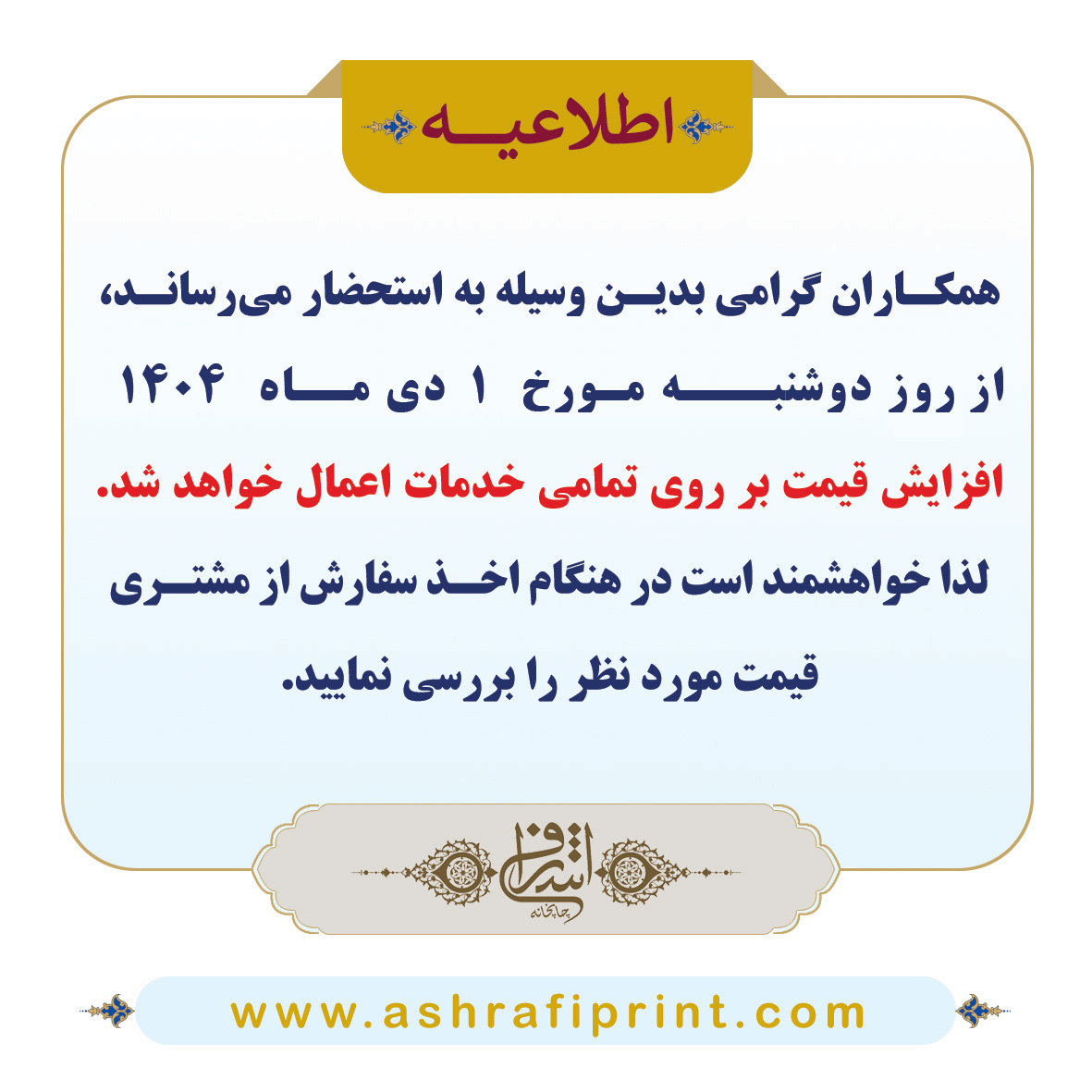 با سفارش به مجتمع چاپ اشرافی می توانید آسودگی خاطر داشته باشید که سفارش شما با دقت و بالاترین کیفیت چاپ خواهد شد. ما با داشتن ضمانت کیفیت، کیفیت برتر را ارایه می کنیم.
